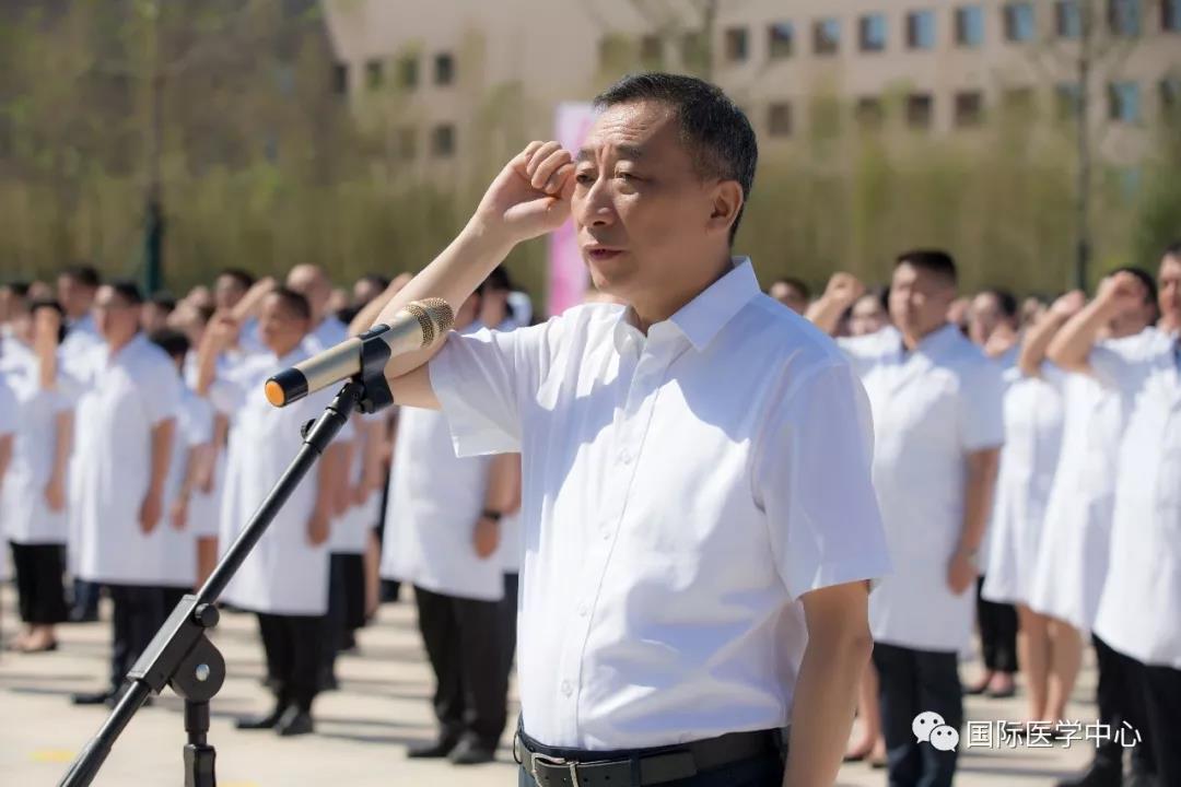 儀式開始,王志峰總經理發(fā)表了熱情洋溢的致辭,歡迎來自五湖四海的各位醫(yī)療及醫(yī)療保障工作者們,并祝賀大家成為西安國際醫(yī)學中心的開拓者、創(chuàng)業(yè)者。他表示,經過近一年的密集籌備、人員引進,我中心首批員工到崗,其中學科帶頭人和骨干來自全國知名三甲醫(yī)院,可謂人才濟濟,精英薈萃,具備揚帆遠航的實力。全體員工是西安國際醫(yī)學中心建設的基石、發(fā)展的核心動力。合格的國際醫(yī)學人,應該是以至善之心博愛天下,以服務社會積微致遠。秉承讓“患者有尊嚴的生活,醫(yī)者有尊嚴的工作”的價值觀,珍惜機遇,牢記誓言,不忘初心,砥礪前行。匯聚人類生命科學智慧,同步國際頂尖診療水平。為了一個共同的目標凝聚一起,共同“佑護無法衡量的價值”!