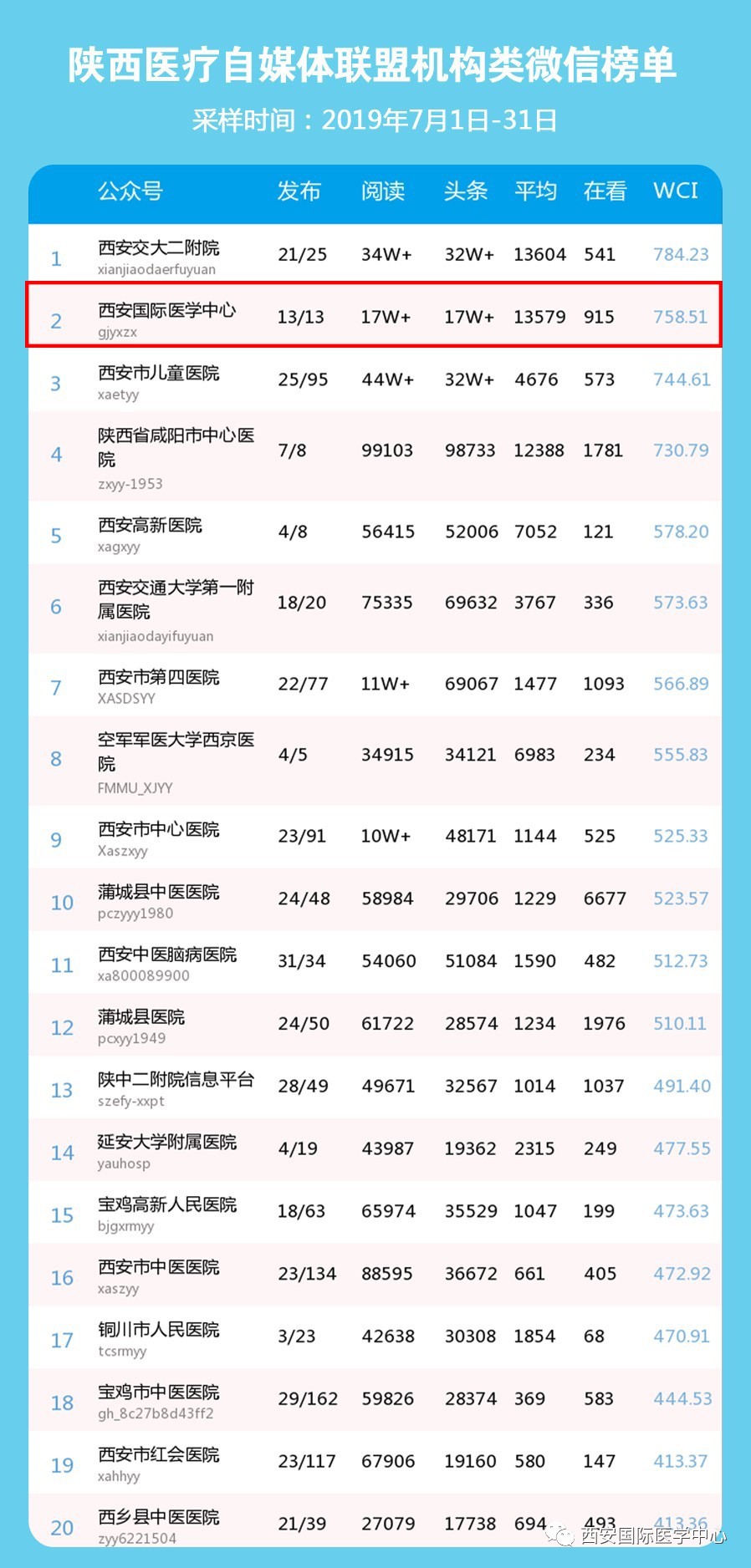西安國際醫(yī)學(xué)中心奪得陜盟醫(yī)療機(jī)構(gòu)7月榜單第2名