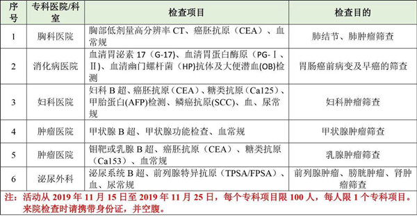 腫瘤篩查項(xiàng)目表