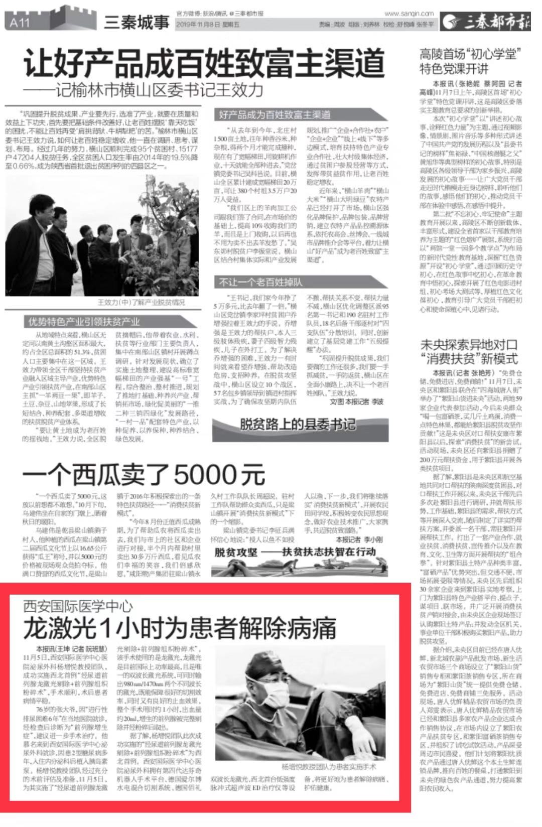 三秦都市報報道—龍激光1小時為患者解除病痛。點擊閱讀。