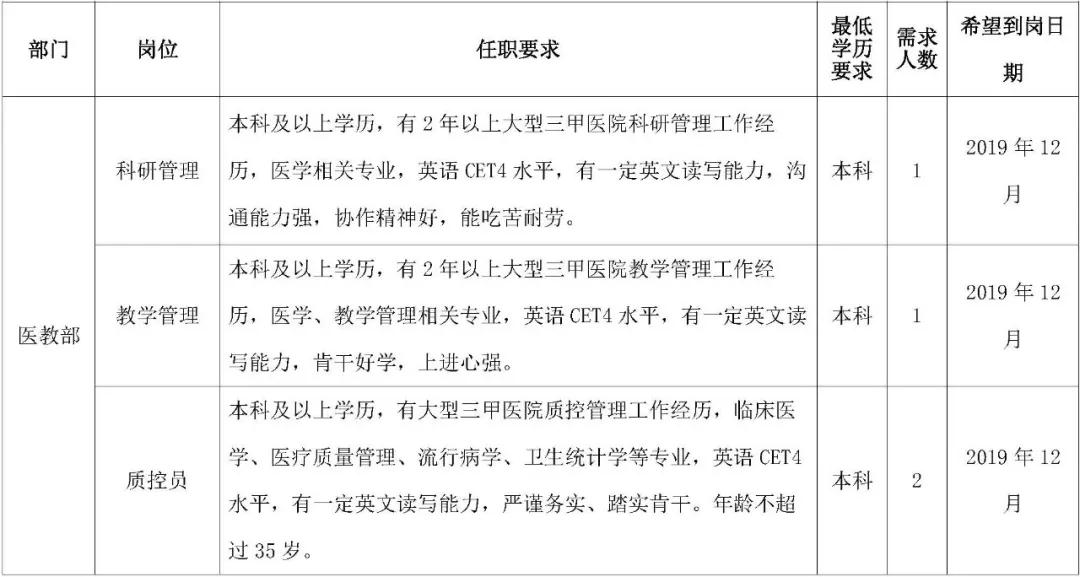擁護黨的路線、方針、政策;遵守國家法律、法規(guī);熱愛本職工作,責任心強,有良好的職業(yè)道德,認同國際醫(yī)學價值理念,愿意投身醫(yī)療事業(yè);所學專業(yè)必須與應聘崗位要求相符或必須具有相關從業(yè)經歷。
