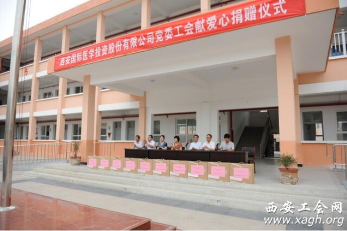 六一前夕,由西安市財(cái)貿(mào)工會(huì)、西安市教科文衛(wèi)工會(huì)和西安國(guó)際醫(yī)學(xué)投資股份有限公司聯(lián)合發(fā)起的“真情牽手、愛心助學(xué)”捐贈(zèng)活動(dòng)在戶縣蔣村鎮(zhèn)甘西小學(xué)進(jìn)行。