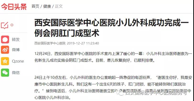 12月24日,西安國(guó)際醫(yī)學(xué)中心醫(yī)院的手術(shù)室內(nèi)上演了暖心的一幕:小兒外科主治醫(yī)師謝崇為一名新生兒成功實(shí)施會(huì)陰肛門(mén)成型術(shù)。目前,患兒恢復(fù)良好,已順利排便。