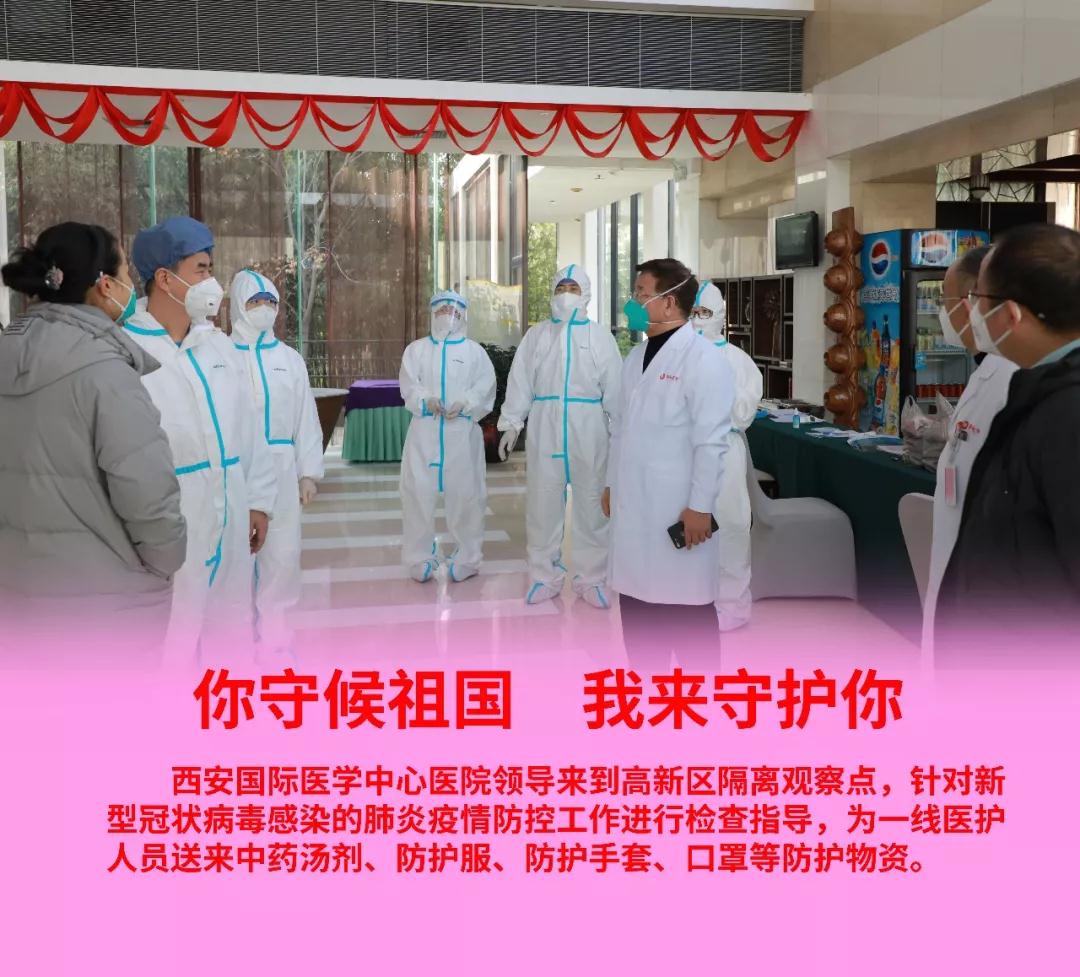 疫情防控是一場(chǎng)沒有硝煙的戰(zhàn)爭,這場(chǎng)戰(zhàn)爭牽動(dòng)著每一個(gè)人的心弦。此前,院長尹強(qiáng)、總經(jīng)理王志峰、副院長楊峰等,先后來到高新區(qū)隔離觀察點(diǎn),為一線醫(yī)護(hù)人員送來中藥湯劑、防護(hù)服、防護(hù)手套、口罩等防護(hù)物資。