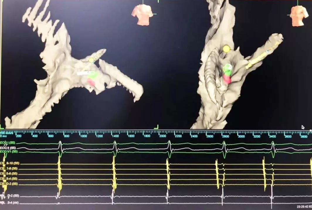 在完成常規(guī)檢查,排除新型冠狀病毒肺炎的可能后,2月17日,由廉誠(chéng)主刀,在三維標(biāo)測(cè)系統(tǒng)指引下行零射線心臟電生理檢查及射頻消融術(shù)。術(shù)中明確患者心動(dòng)過(guò)速為房室結(jié)折返性心動(dòng)過(guò)速,遂行房室結(jié)慢徑改良,消融完畢后反復(fù)刺激驗(yàn)證,心動(dòng)過(guò)速均不能誘發(fā),手術(shù)成功,歷時(shí)約1小時(shí),全程零射線完成。這也是西安國(guó)際醫(yī)學(xué)中心醫(yī)院心臟病醫(yī)院的首例零射線治療特殊人群心律失常病例。