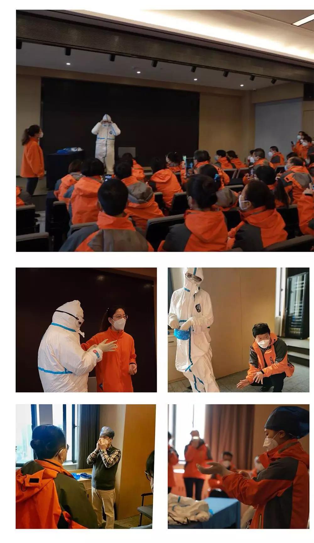 在醫(yī)療隊(duì)出發(fā)前一晚,感控部對全體人員進(jìn)行了防護(hù)及消毒知識培訓(xùn),并下發(fā)培訓(xùn)內(nèi)容供大家隨時(shí)翻閱學(xué)習(xí)。到達(dá)武漢當(dāng)日晚,劉冰主任和趙燕護(hù)士長根據(jù)醫(yī)療隊(duì)物資儲備情況,設(shè)計(jì)穿脫防護(hù)用品流程,制定了嚴(yán)格的防護(hù)培訓(xùn)方案。