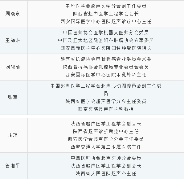 本次義診的醫(yī)護團隊陣容不僅專業(yè)面廣而且水平高,僅超聲科就聚集了西安市各大醫(yī)院的超聲科主任一起深入基層為平利的女同胞們義診。他們是: