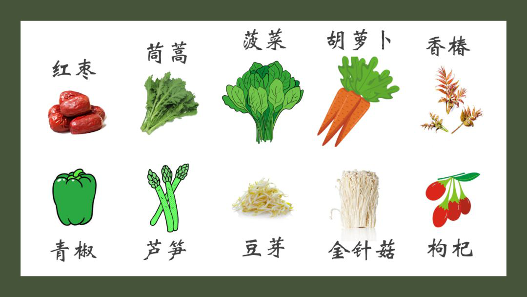 飲食應以清淡為主,因為油膩口味重的食物會加重肝臟代謝的負擔,肝中堆積過多的脂肪則可能會引起脂肪肝等肝臟疾病。應多吃富含維生素和微量元素的綠色蔬菜和水果,重點推薦以下幾種: