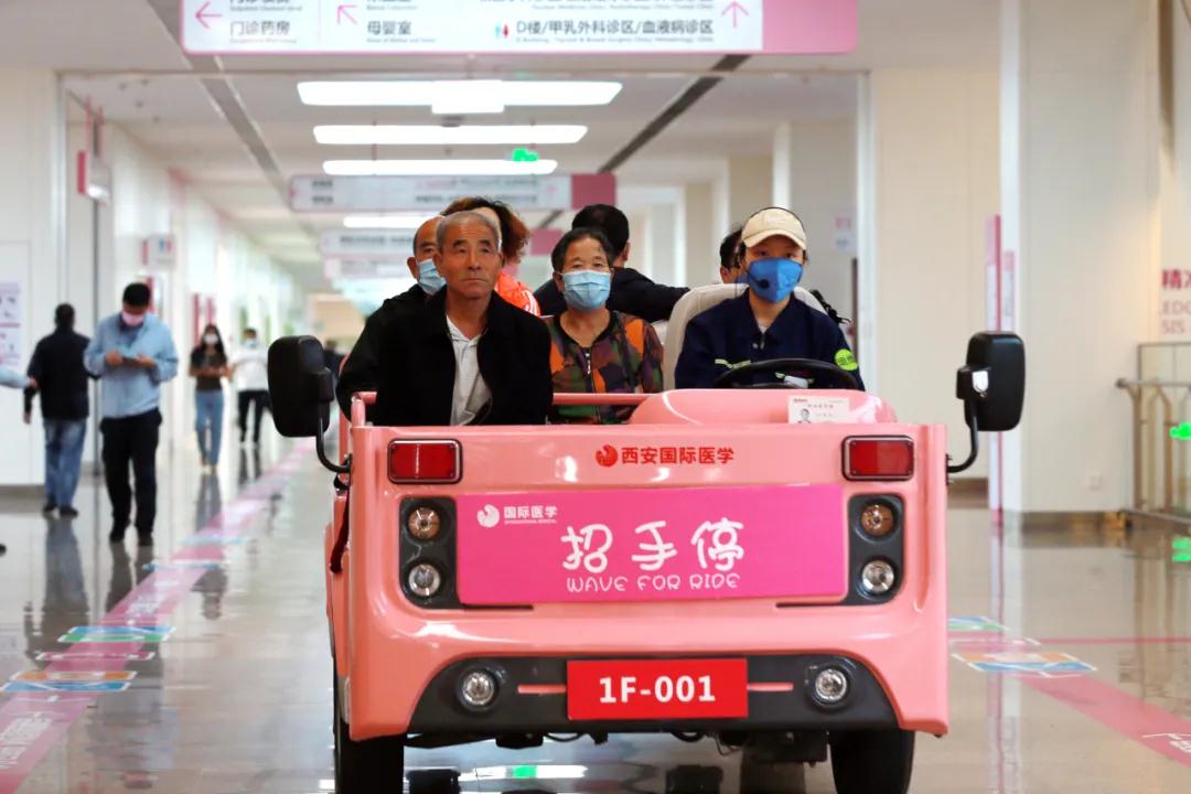 自2019年9月25日開診以來,醫(yī)院在門診一二三層都配備了“招手?!彪娖寇?,免費接送就醫(yī)民眾和醫(yī)護人員往返于各??漆t(yī)院和科室,隨招隨停。