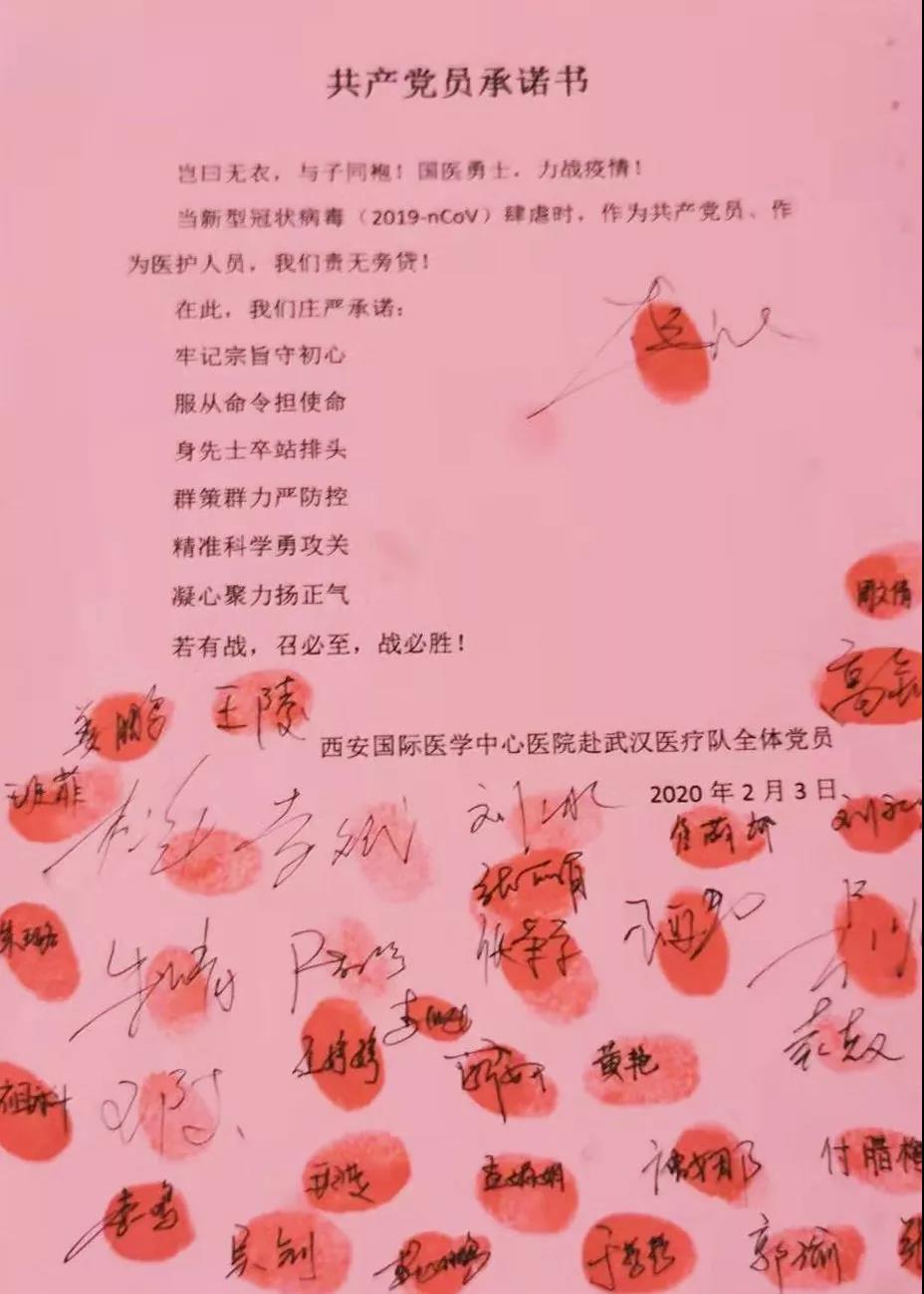 2月3日,西安國際醫(yī)學中心醫(yī)院赴武漢醫(yī)療隊抗擊新型冠狀病毒感染的肺炎承諾踐諾書一經(jīng)發(fā)布,又有一批批醫(yī)護人員紛紛遞交請戰(zhàn)書、入黨申請書。