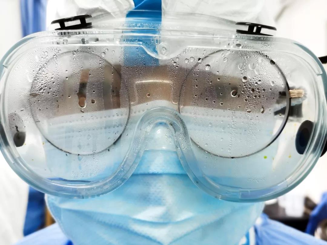 醫(yī)療隊護理部倪曉慧主任帶著護士長張榮榮、向丹、范喬、李彤等,進入隔離房的護理人員。進去前,她們穿刷手服、一層防護服、一層隔離衣,然后戴著護目鏡和面屏、兩層口罩,一層是N95,另一層是外科口罩。僅穿時就達20分鐘。穿完以后渾身是汗,穿個衣服就已經(jīng)非常耗體力了。要脫就更難了,不得不嚴格按程序和順序操作。毛金蓮護士長作為督導組,站在旁邊,一個又一個檢查。
