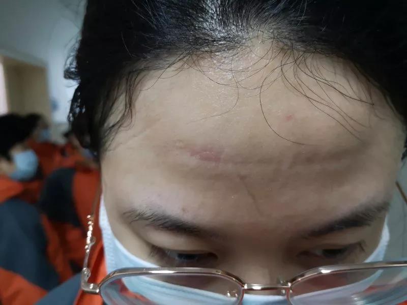 臉上的防護罩勒痕清晰可見,
