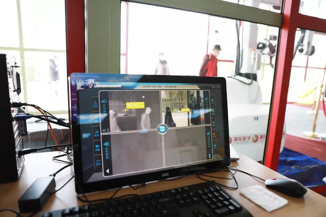 西安國際醫(yī)學中心醫(yī)院在三個主要通道均設立體溫檢測點,逢人必檢、逢疑必核。當被測目標在紅外鏡頭探測器鏡頭8米內快速經(jīng)過時,儀器在1秒鐘內便可顯示人體熱圖像和最高體溫標度。若被檢測者體溫異常,該系統(tǒng)便立即報警并拍攝體溫異常者圖像。