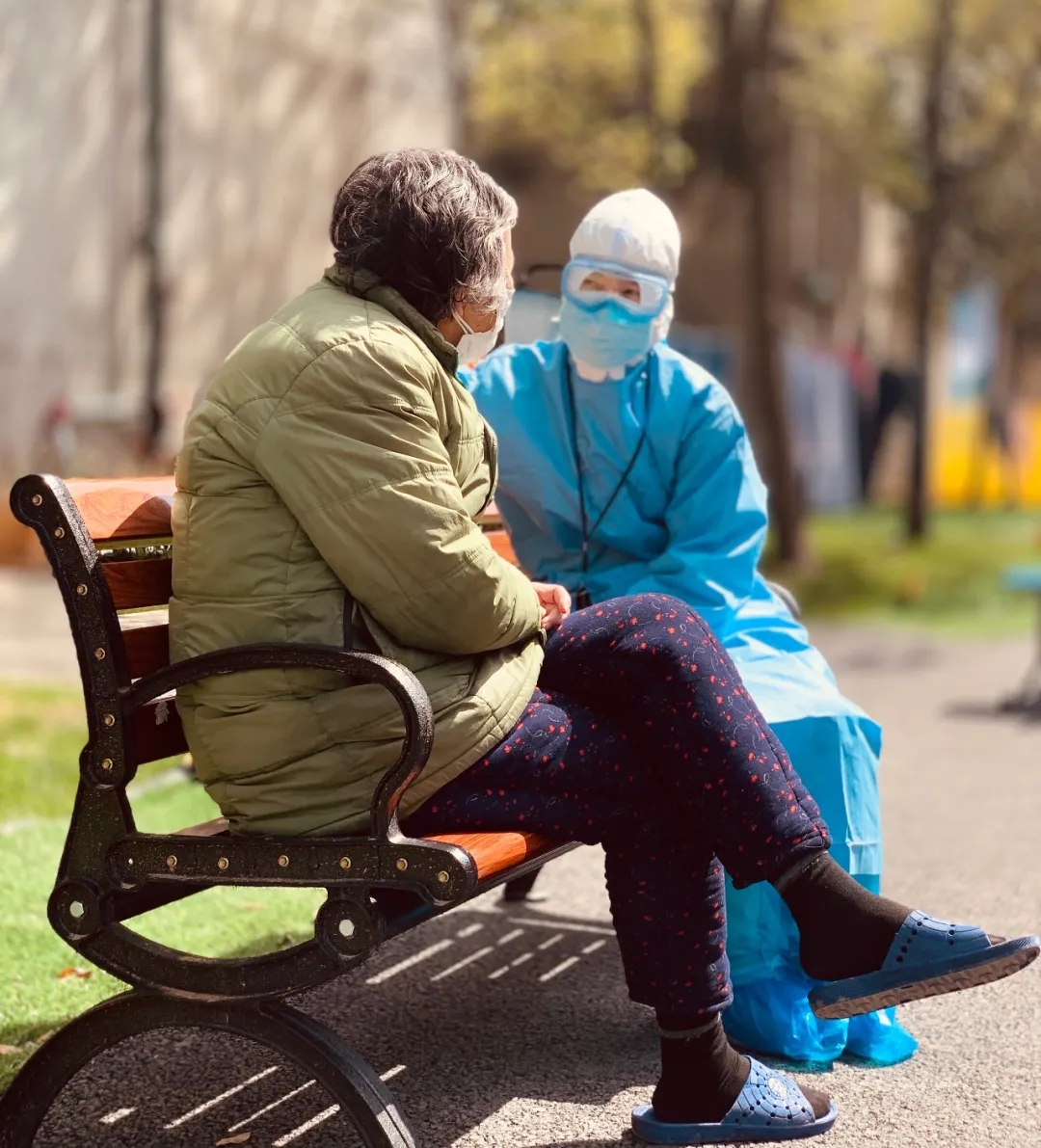8艙有一位80多歲的老奶奶,中午出來遛彎時(shí)看到了醫(yī)療隊(duì)護(hù)士萬珍妮,主動(dòng)過來攀談。“你是陜西來的?我看你衣服上寫著西安幾個(gè)字了?!薄笆前。棠?,我們是西安國際醫(yī)學(xué)中心醫(yī)院來武漢支援的。”萬珍妮通過和奶奶聊天得知,奶奶的父親以前在寶雞工作過很長時(shí)間?!拔乙菜惆雮€(gè)陜西人了。沒想到在這里還能見到“老鄉(xiāng)”!感謝你們!”奶奶感覺很親切,和萬珍妮話起了“家?!?。
