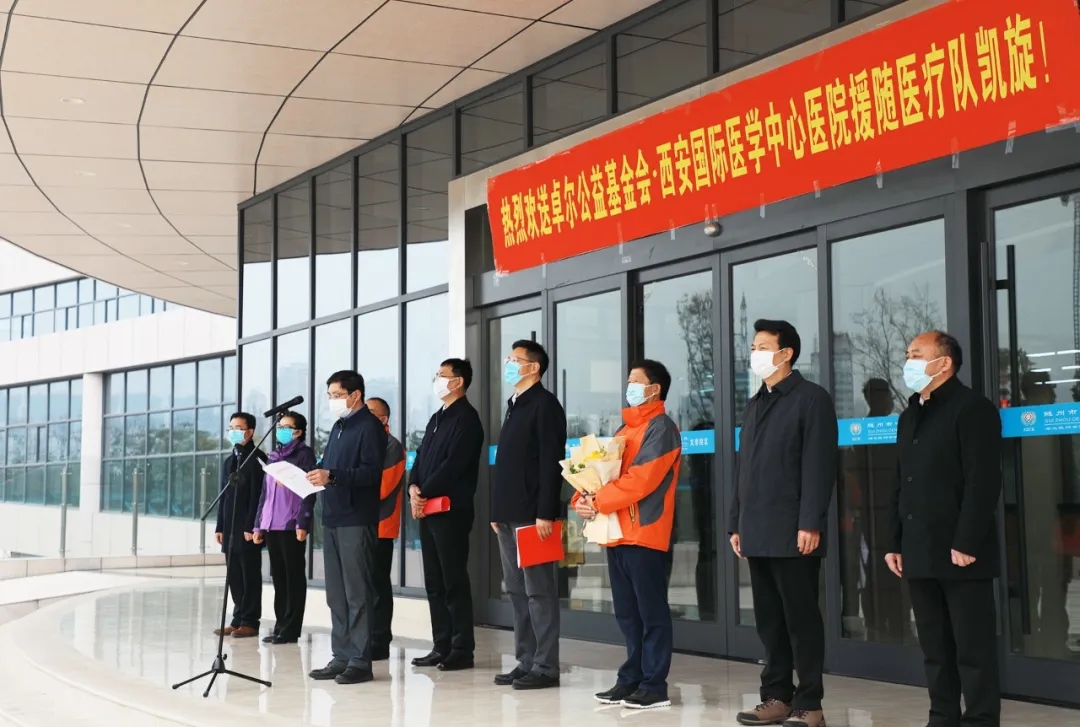 陳瑞峰書記代表隨州市委、市政府,代表258萬隨州人民,向醫(yī)療隊全體隊員表示最衷心的感謝和最崇高的敬意!他說,危難之時見真情,在隨州疫情防控最吃勁的關鍵階段,西安國際醫(yī)學中心醫(yī)院援隨醫(yī)療隊義無反顧的堅定逆行,同隨州人民風雨同舟,日夜鏖戰(zhàn)在疫情防控第一線,托起了無數(shù)生命的希望,傳遞著人性光輝和社會大愛,充分展現(xiàn)了“敬佑生命、救死扶傷、甘于奉獻、大愛無疆”的醫(yī)者仁心,你們是最美的天使,是真正的英雄,是新時代最可愛的人,為保障隨州人民生命安全和身體健康作出了重要貢獻。經過艱苦努力,隨州疫情防控形勢發(fā)生積極向好變化,但不獲全勝決不輕言成功。我們堅信,有以習近平同志為核心的黨中央堅強領導,有中國特色社會主義制度優(yōu)勢,有卓爾控股集團和西安國際醫(yī)學中心醫(yī)院的大力支持,有全市人民眾志成城、同舟共濟,一定能夠不斷鞏固成果、擴大戰(zhàn)果,奪取疫情防控人民戰(zhàn)爭、總體戰(zhàn)、阻擊戰(zhàn)的全勝完勝,一定會迎來一個繁花似錦的春天。誠摯地邀請大家常回隨州,隨州永遠是你們的家,隨州人民永遠把你們當恩人、當親人!