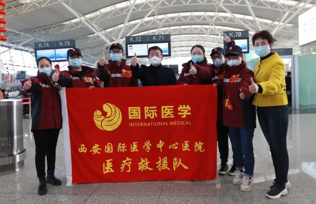 2月2日,西安國(guó)際醫(yī)學(xué)中心醫(yī)院舉行赴武漢醫(yī)療救援隊(duì)出征儀式。尹強(qiáng)院長(zhǎng)、王志峰總經(jīng)理、楊峰副院長(zhǎng)及300余名醫(yī)護(hù)人員參加。