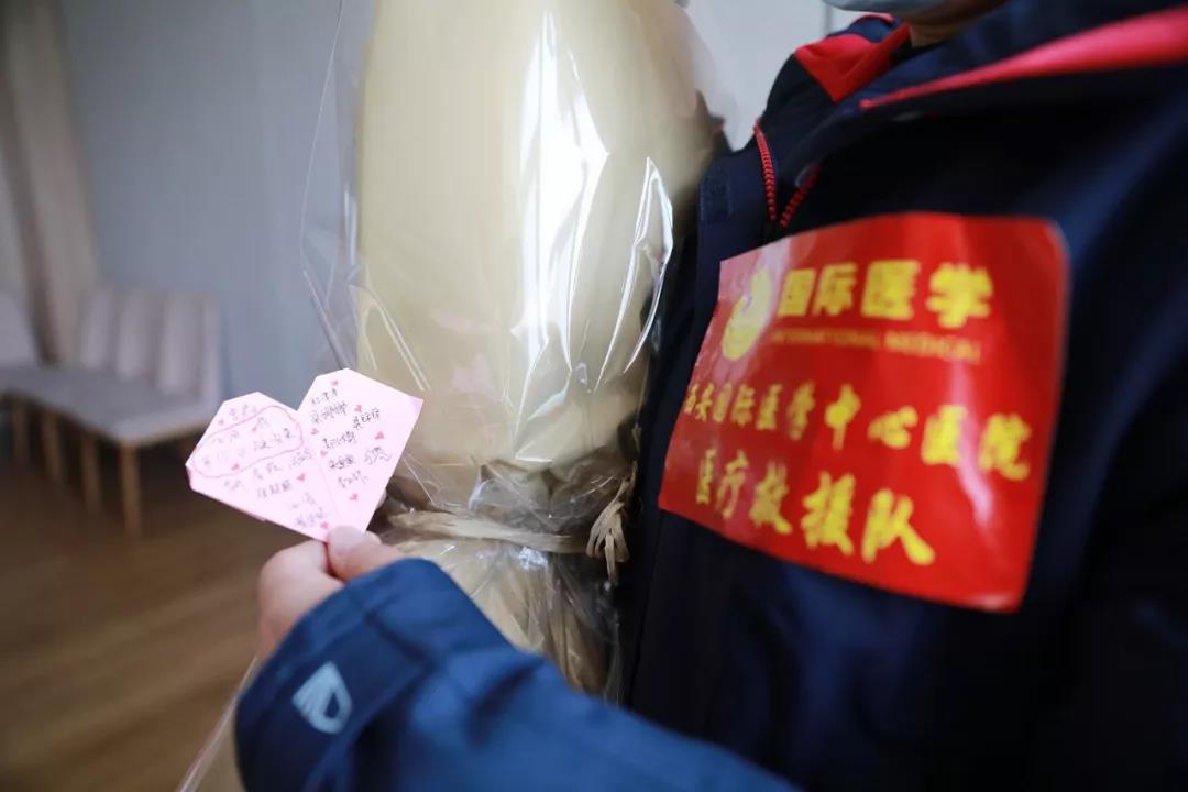 “國(guó)際醫(yī)學(xué)加油!武漢加油!中國(guó)加油!”全體醫(yī)護(hù)人員鏗鏘有力的聲音傳達(dá)出身為國(guó)際醫(yī)學(xué)人的自豪感與使命感,堅(jiān)定了同舟共濟(jì)、抗擊疫情的信心。