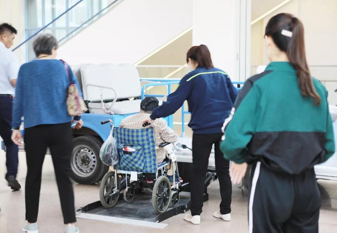 義診現(xiàn)場(chǎng)有位96歲的老人,因下肢水腫在家屬陪同下來(lái)院咨詢,心臟內(nèi)科李艷副主任醫(yī)師接待患者并悉心解答問(wèn)題。因患者乘坐輪椅行動(dòng)不便,我院為其提供了“招手?!彪娖寇嚪?wù),電瓶車的升降臺(tái)為患者上下車提供很大便利。家屬表示“很貼心,從來(lái)沒(méi)有在醫(yī)院見(jiàn)過(guò)這樣的服務(wù)!”
