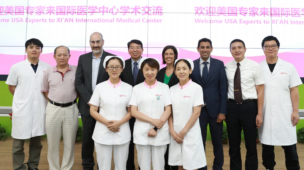 7月26日,美國斯克里普斯醫(yī)院四位專家應(yīng)邀到西安國際醫(yī)學(xué)中心進(jìn)行學(xué)術(shù)交流與參觀。西安國際醫(yī)學(xué)中心院長尹強(qiáng)、心臟病醫(yī)院副院長張金洲等領(lǐng)導(dǎo)熱情接待了到訪專家。