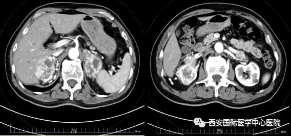 今年七十五歲的患者,來自陜西省商洛市,四月前因腰背部疼痛就診于當?shù)蒯t(yī)院,行CT檢查發(fā)現(xiàn)“右腎、雙側腎上腺占位,前縱膈淋巴結腫大,雙肺多發(fā)結節(jié)、胸椎骨質破壞,考慮轉移瘤”。為進一步診斷治療,患者的兒子帶他來到西安某三甲醫(yī)院,查泌尿系CT提示“右腎占位性病變,多考慮腎癌,雙側腎上腺多發(fā)轉移灶,腹膜后多發(fā)腫大淋巴結”;行穿刺活檢提示“腎透明細胞癌”;并給予患者口服靶向藥物的治療方案。