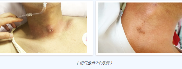 患者妻子含淚回顧了當(dāng)時(shí)的情況,“當(dāng)他被推進(jìn)重癥醫(yī)學(xué)科的那一刻,我的心如撕裂般的疼痛,家人們也早已泣不成聲,我們面對的是一個(gè)陌生的地方,不知道里面正在發(fā)生著什么,對突如其來的意外更是無所適從。尤其是醫(yī)生說需要做氣管切開時(shí),一想到要在他脖子上開一道口子我們就心痛,擔(dān)心會影響他說話;擔(dān)心傷口長不上;擔(dān)心他將來留個(gè)疤,甚至懷疑做了氣管切開就是沒救了?,F(xiàn)在看來,我們的擔(dān)心是多余的?,F(xiàn)在脖子上的傷口不僅很小而且很美觀,不仔細(xì)看根本看不出來。”