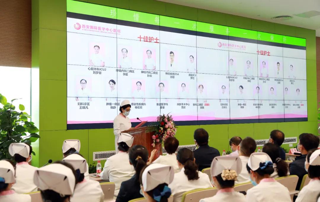 為紀(jì)念“5.12”國際護(hù)士節(jié),弘揚(yáng)南丁格爾精神,展示護(hù)理團(tuán)隊(duì)良好精神風(fēng)貌和職業(yè)風(fēng)范,5月9日,西安國際醫(yī)學(xué)中心醫(yī)院舉行新護(hù)士授帽儀式暨“十佳護(hù)士”表彰大會(huì),各科室分會(huì)場(chǎng)同時(shí)轉(zhuǎn)播。西安國際醫(yī)學(xué)中心醫(yī)院院長尹強(qiáng)、副院長李武平及各??漆t(yī)院、各科室、各職能部門共計(jì)千余人參加。大會(huì)由護(hù)理部主任張敏主持。
