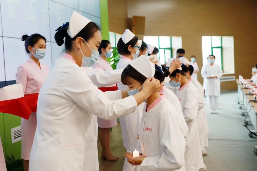 會(huì)上,李武平副院長宣讀《關(guān)于十佳護(hù)士及優(yōu)秀護(hù)士的表彰決定》。熠熠燭光中,院領(lǐng)導(dǎo)為50名新護(hù)士代表授帽?!坝嘀?jǐn)以至誠,終身純潔,忠貞職守……?”在張敏主任的引領(lǐng)下,新護(hù)士們重溫南丁格爾誓詞。