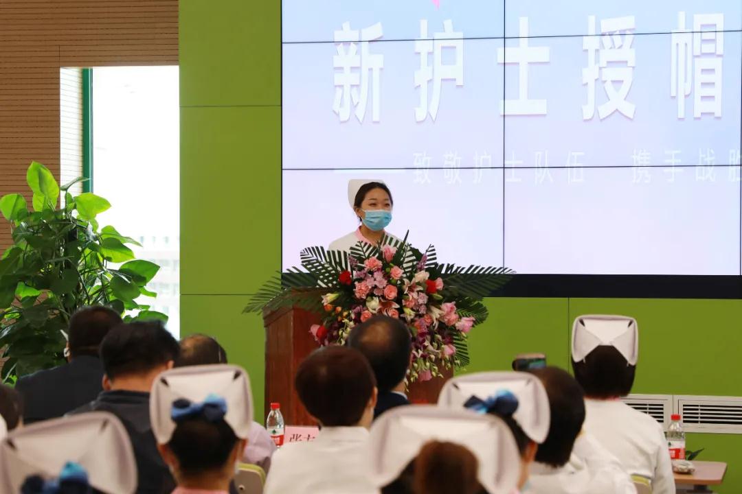 血液凈化中心護(hù)士張晶代表全院240名新入職護(hù)士發(fā)言,她說,戴在頭上的不單單是一頂燕尾帽,它是責(zé)任,是使命,是擔(dān)當(dāng),更是對(duì)新護(hù)士們的殷切希望。新冠疫情襲來時(shí),前輩們用實(shí)際行動(dòng)闡釋“南丁格爾精神”和“國際醫(yī)學(xué)精神”,新護(hù)士們將傳承使命,用平凡的工作佑護(hù)無法衡量的價(jià)值!