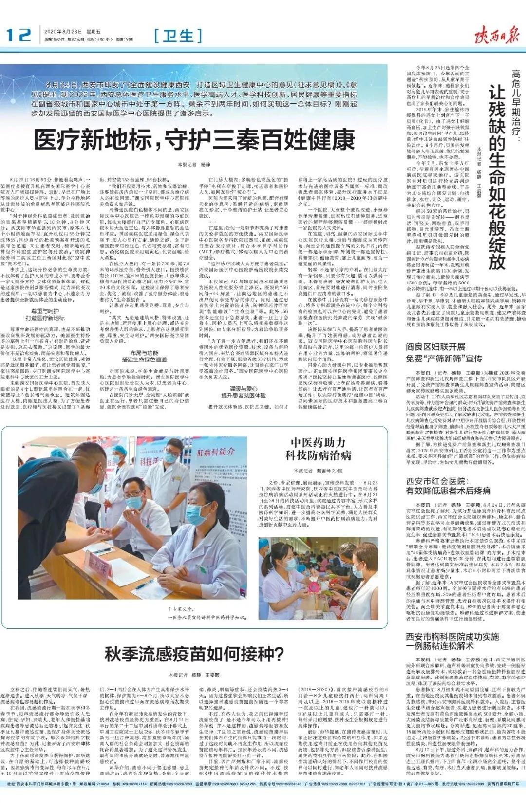 編者按:8月28日,陜西日報以《醫(yī)療新地標(biāo),守護三秦百姓健康》為題刊發(fā)關(guān)于西安國際醫(yī)學(xué)中心醫(yī)院醫(yī)療地標(biāo)稿件,從跨省空中救援、醫(yī)院布局結(jié)構(gòu)、患者就診體驗等方面,全方位展示出以患者為中心的醫(yī)院服務(wù)?,F(xiàn)將原文刊發(fā)以饗讀者。