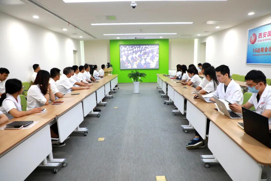 9月8日上午,西安國際醫(yī)學(xué)中心醫(yī)院6樓會議室,尹強院長、王志峰總經(jīng)理等與醫(yī)護人員代表,機關(guān)黨員干部代表收看全國抗擊新冠肺炎疫情表彰大會實況。
