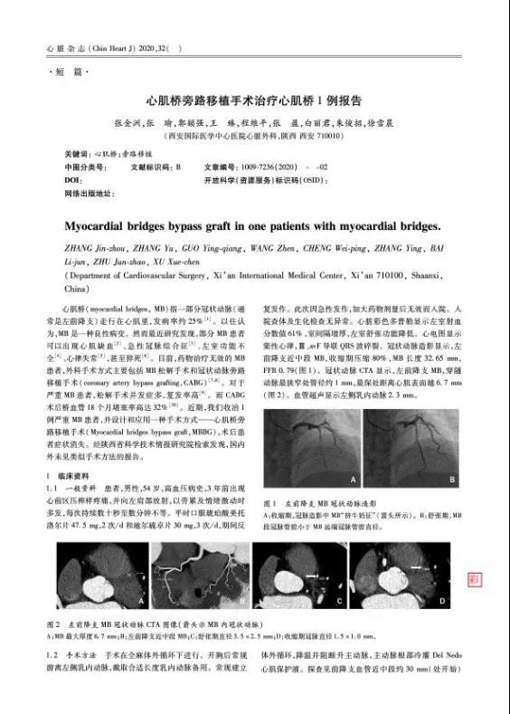 近日,西安國際醫(yī)學中心醫(yī)院心臟病醫(yī)院副院長張金洲教授等撰寫的“Myocardial bridge Bypass Graft: a Novel Surgical Procedure for Extensive Myocardial Bridges”(心肌橋旁路移植手術(shù):治療廣泛心肌橋的一種新的外科術(shù)式)被心胸外科領(lǐng)域的頂級期刊Ann Thorac Surg接受,代表西安國際醫(yī)學中心醫(yī)院心臟外科首創(chuàng)的這一術(shù)式得到國際同行的認可。2020年4月,張金洲教授首次應用這一術(shù)式治療一例難治性廣泛心肌橋病人,取得滿意的療效。隨后,心血管領(lǐng)域國內(nèi)權(quán)威期刊《心臟雜志》以快速通道的方式報道了這一術(shù)式,引起國內(nèi)同行和患者的關(guān)注。至此,我院心臟外科首創(chuàng)技術(shù)獲得國內(nèi)外同行的認可。