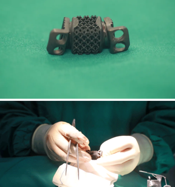 12月1日,西安國際醫(yī)學(xué)中心醫(yī)院骨科醫(yī)院脊柱外科賀西京團(tuán)隊(duì)為一位63歲脊髓型頸椎病伴不完全癱瘓的患者實(shí)施了頸4椎體椎間盤切除、3D打印Ti6Al4V合金可動人工頸椎——椎間盤復(fù)合體植入術(shù)。