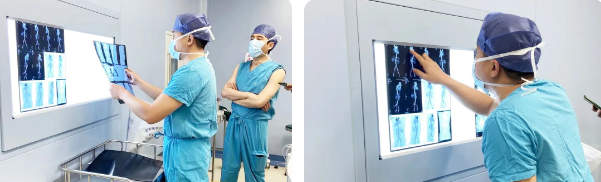 這位患者楊某,平日無任何不適癥狀,有高血壓病史7年。近日突感胸背部疼痛,加重4小時(shí),呈持續(xù)性撕裂樣痛。當(dāng)?shù)蒯t(yī)院的胸部CT提示:主動(dòng)脈增寬,考慮主動(dòng)脈夾層,建議緊急轉(zhuǎn)往上級(jí)醫(yī)院治療。家人連夜把患者送到西安國(guó)際醫(yī)學(xué)中心醫(yī)院進(jìn)一步治療。經(jīng)急診核酸檢測(cè)后,楊某于12日凌晨3點(diǎn)走“主動(dòng)脈夾層綠色通道”,住進(jìn)心臟外科ICU。進(jìn)一步檢查發(fā)現(xiàn),該患者有:主動(dòng)脈夾層(DebakeyI型)、動(dòng)脈夾層撕裂到左側(cè)髂總動(dòng)脈,主動(dòng)脈瓣返流(中量)、雙側(cè)胸腔及心包腔積液。考慮到主動(dòng)脈隨時(shí)有破裂的風(fēng)險(xiǎn),他們當(dāng)機(jī)決定為楊某急診手術(shù)。手術(shù)于13日早上8點(diǎn)30分開始,張金洲及其團(tuán)隊(duì)先行主動(dòng)脈根部重建,再用術(shù)中支架修復(fù)降主動(dòng)脈,然后用四分支血管替換破裂的升主動(dòng)脈及主動(dòng)脈弓,最后吻合主動(dòng)脈弓上分支血管。手術(shù)節(jié)奏流暢,團(tuán)隊(duì)配合默契,歷經(jīng)7個(gè)小時(shí)手術(shù)順利完成。
