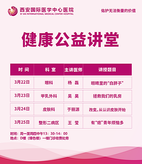 西安國際醫(yī)學中心醫(yī)院—青年醫(yī)師健康公益講堂預告