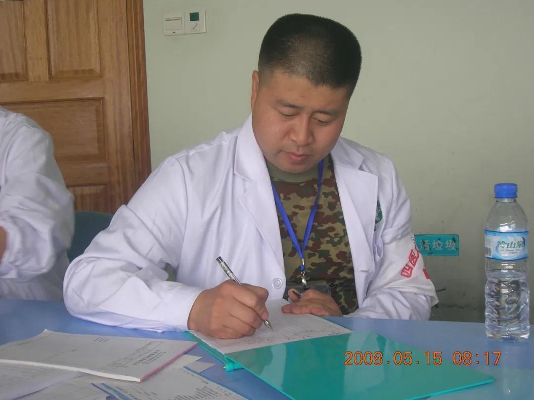 14時28分,山河破碎,天崩地裂,西安有強烈震感。李占亭撥開向室外沖的人潮,逆行進入透析室,在天旋地轉(zhuǎn)中幫助尚在透析的患者下機。安置好患者,他才想起在唐都醫(yī)院家屬院的妻子和不滿2歲的幼女?!叭粲袘?zhàn),召必至”,當天晚上,李占亭響應號召,收拾行囊準備出發(fā)。急救包、迷彩服、膠鞋、手電筒、巧克力、壓縮餅干、礦泉水、紙巾是他的裝備。沒有人知道他將面臨怎樣的危險與挑戰(zhàn)。