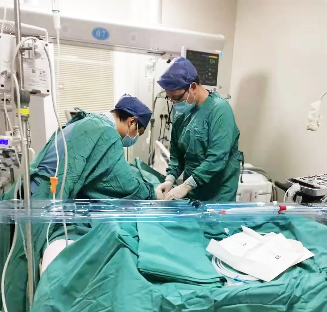 氣管插管后患者血氧飽和度仍然只有74%左右。呼吸內(nèi)科重癥監(jiān)護(hù)室陳麗展主任根據(jù)患者病情,建議盡早進(jìn)行VV-ECMO治療——患者肺部感染嚴(yán)重,需要人工體外搭建一個(gè)“肺”暫時(shí)代替“病肺”工作,爭取挽救“病肺”時(shí)間同時(shí)維持患者正常呼吸,保證其他臟器正常運(yùn)行。征得家屬同意后,呼吸內(nèi)科聯(lián)合心外科緊急會診,評估患者是否適合進(jìn)行VV-ECMO治療,結(jié)果建議VV-ECMO治療。
