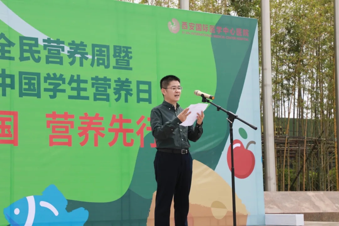 5月16日,2021年“全民營(yíng)養(yǎng)周”陜西啟動(dòng)儀式在西安國(guó)際醫(yī)學(xué)中心醫(yī)院舉行,標(biāo)志著為期一周的陜西省全民營(yíng)養(yǎng)周科普宣教活動(dòng)正式拉開(kāi)序幕。陜西省衛(wèi)健委副主任余立平、陜西省科學(xué)技術(shù)協(xié)會(huì)學(xué)會(huì)部部長(zhǎng)田世坡、西安國(guó)際醫(yī)學(xué)投資股份有限公司董事長(zhǎng)史今、陜西省中醫(yī)藥大學(xué)副校長(zhǎng)楊景峰、陜西省衛(wèi)健委食品安全標(biāo)準(zhǔn)與風(fēng)險(xiǎn)監(jiān)測(cè)處處長(zhǎng)陳海鴻、陜西省人民醫(yī)院副院長(zhǎng)米濤、陜西省疾病預(yù)防控制中心副主任程永兵、陜西省營(yíng)養(yǎng)學(xué)會(huì)常務(wù)理事長(zhǎng)張瑞娟、西安國(guó)際醫(yī)學(xué)中心醫(yī)院院長(zhǎng)尹強(qiáng)、西安國(guó)際醫(yī)學(xué)中心醫(yī)院總經(jīng)理王志峰、陜西省營(yíng)養(yǎng)學(xué)會(huì)名譽(yù)理事長(zhǎng)周玲、陜西省營(yíng)養(yǎng)學(xué)會(huì)理事長(zhǎng)王楓出席啟動(dòng)儀式。