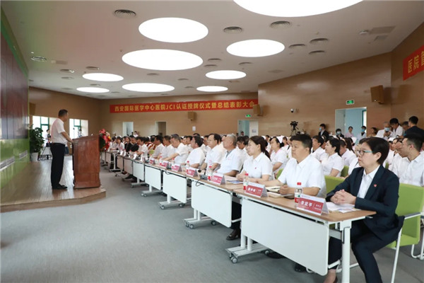 5月27日,西安國際醫(yī)學(xué)中心醫(yī)院舉行JCI認證授牌儀式暨總結(jié)表彰大會。聯(lián)合委員會國際部總裁兼首席執(zhí)行官PaulaWilson ,聯(lián)合委員會國際部中國區(qū)主任、JCI評審(北京)有限公司副總經(jīng)理任暉,聯(lián)合委員會國際部JCI認證組組長孔雅雀,華潤JCI研究院執(zhí)行院長酈忠,西安國際醫(yī)學(xué)投資股份有限公司總裁劉瑞軒、副董事長王愛萍、副總裁孫文國、副總裁王杲、孫義寬,西安國際醫(yī)學(xué)中心醫(yī)院院長尹強、總經(jīng)理王志峰等領(lǐng)導(dǎo),各??漆t(yī)院院長、主任、護士長以及職工代表參加。