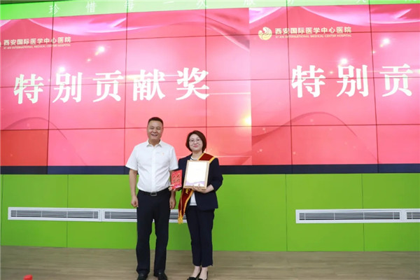 國際醫(yī)學(xué)集團領(lǐng)導(dǎo)、西安國際醫(yī)學(xué)中心醫(yī)院領(lǐng)導(dǎo)分別為特別貢獻獎、優(yōu)秀部門獎、優(yōu)秀科室獎、優(yōu)秀個人獎的獲獎集體及個人頒獎。