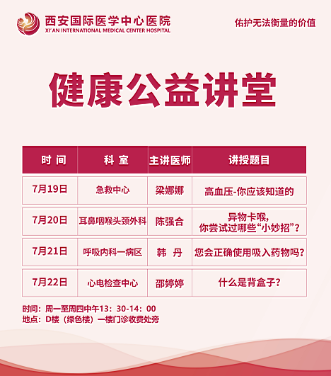 西安國際醫(yī)學(xué)中心醫(yī)院—青年醫(yī)師健康公益講堂預(yù)告