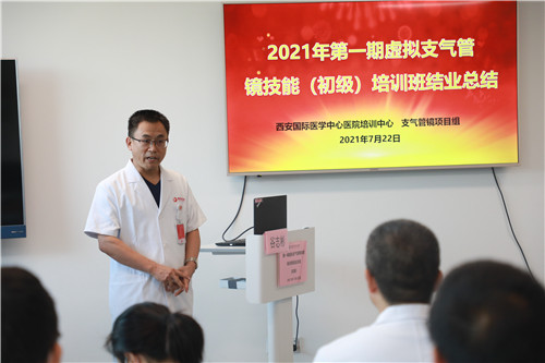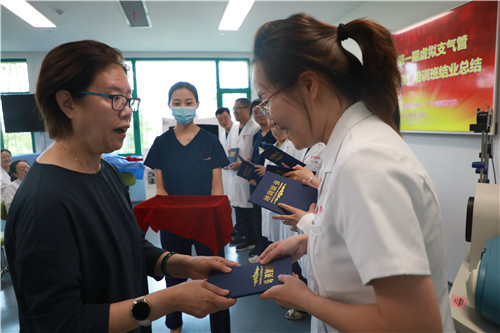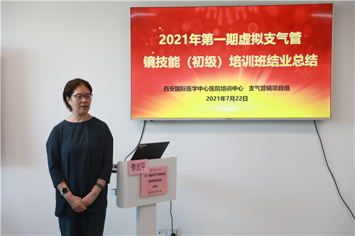 在結(jié)業(yè)典禮上,李武平院長頒發(fā)培訓(xùn)證書,對結(jié)業(yè)學(xué)員表示祝賀;對來自支氣管鏡檢查室、培訓(xùn)中心兼職教師谷志彬教授的專業(yè)素養(yǎng)與辛苦付出表示贊揚(yáng);對康福霞主任帶領(lǐng)下的培訓(xùn)中心工作團(tuán)隊給予高度肯定。同時李院長指出:“每一段看似結(jié)束的培訓(xùn)旅程、都應(yīng)是每位學(xué)員職業(yè)生涯新的開始。國際醫(yī)學(xué)培訓(xùn)中心作為醫(yī)生的“圖書館”,應(yīng)當(dāng)時刻了解臨床所需,充分利用各種高端模擬設(shè)備,建立完善的課程體系,助力更多臨床醫(yī)生時刻充電;學(xué)員應(yīng)當(dāng)積極參加并珍惜每一次培訓(xùn)機(jī)會,豐滿自己羽翼?!?