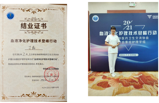 2021年7月,我院血液凈化中心護士丁緣受邀參加,由海峽兩岸醫(yī)藥衛(wèi)生交流協(xié)會護理分會重癥護理學組舉辦的“血液凈化護理技術登峰行動”活動。在此次全國比賽中,丁緣取得了二等獎的優(yōu)異成績。