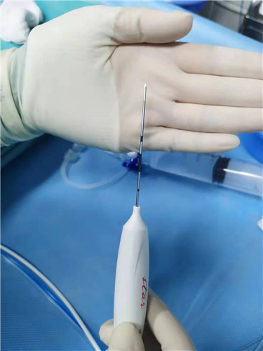 周曉東主任說,傳統(tǒng)手術(shù)是通過頸部正面進入、走的是一條“康莊大道”,雖然路好走了,但對頸前區(qū)組織的破壞也大了;而以上提到的消融術(shù)就是現(xiàn)在治療甲狀腺結(jié)節(jié)的另一種方法。即在超聲的全程引導下,將一根1.4mm粗的電極針插入結(jié)節(jié)內(nèi)部,通過發(fā)射高頻電流,微波,甚至激光使病灶溫度升高,發(fā)生凝固壞死,然后人體會慢慢將這些壞死的組織吸收掉,結(jié)節(jié)(腫瘤)因此“消失”。