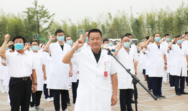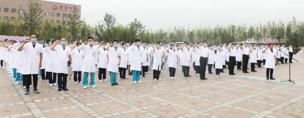 最后,劉延彤院長助理帶領(lǐng)全體新入職員工舉起右手,莊嚴宣誓,鏗鏘有力的誓言在萬人廣場久久回蕩。