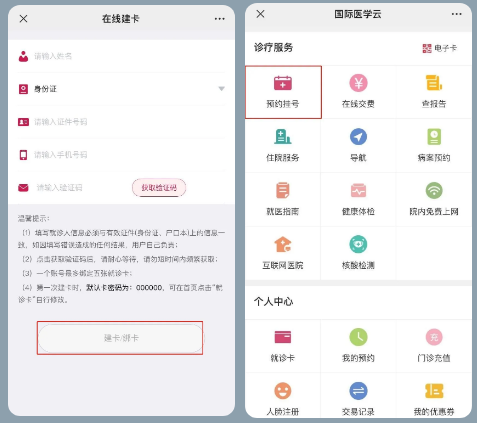 3、輸入個人信息完成就診卡綁定。綁卡后,點擊【預(yù)約掛號】