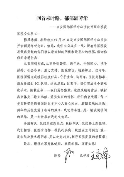 2021年9月25日是西安國(guó)際醫(yī)學(xué)中心醫(yī)院兩周歲生日!