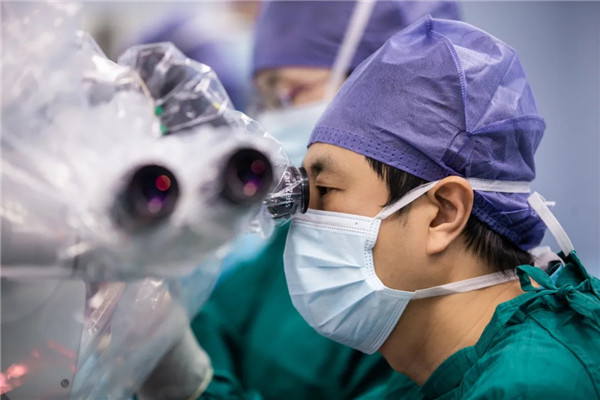 鼻蝶神經(jīng)內(nèi)鏡三腦室底造瘺治療腦積水,對(duì)于術(shù)者的要求極高,不僅要求具有扎實(shí)的顱底解剖基礎(chǔ),還要求有豐富的內(nèi)鏡和顯微手術(shù)經(jīng)驗(yàn)。腦科醫(yī)院賀世明副院長及團(tuán)隊(duì)選取了距離病灶部位最近且對(duì)大腦創(chuàng)傷最小的部位,將幾個(gè)手術(shù)器械從鼻腔送進(jìn)病變區(qū),并在如蜘蛛網(wǎng)般的顱底神經(jīng)血管通道中穿梭,將病灶從鼻腔螞蟻搬家般瓦解運(yùn)出。這一手術(shù),為世界首例。