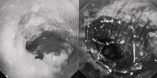 患者入院第二天,在麻醉手術(shù)中心全力配合下,歐陽海峰帶領(lǐng)呼吸介入團隊,歷時40分鐘快速置入硬質(zhì)支氣管鏡、鏟切腫瘤,并順利植入全覆膜TTS支氣管金屬支架?;颊邭舛贪Y狀即刻緩解,為患者贏得了寶貴的后續(xù)治療機會。