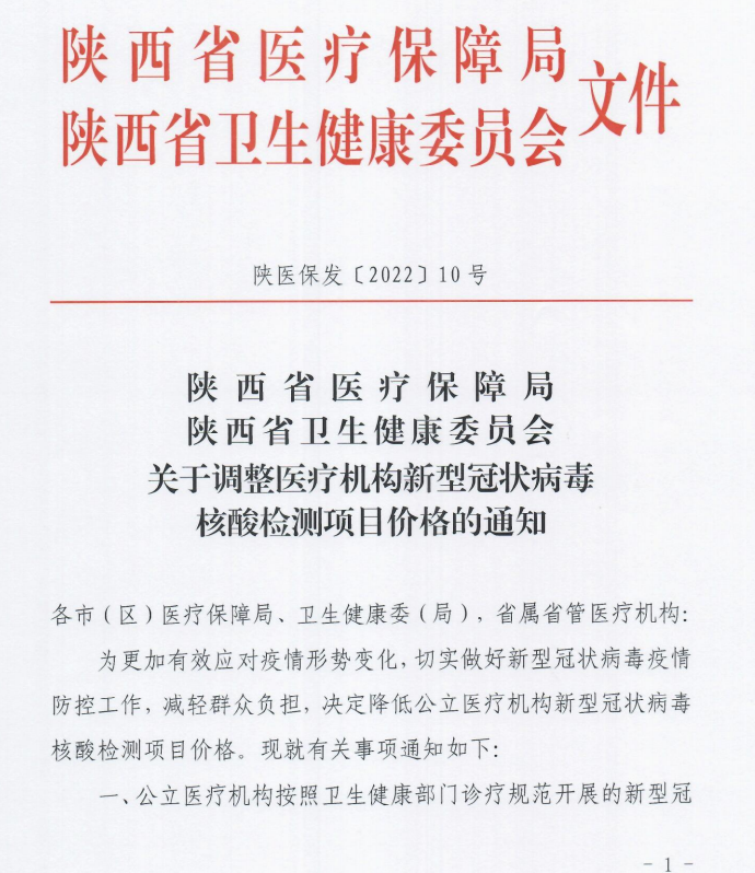 關(guān)于調(diào)整醫(yī)療機(jī)構(gòu)新型冠狀病毒核酸檢測(cè)項(xiàng)目價(jià)格的通知