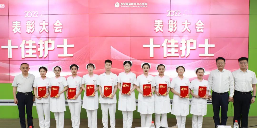 楊峰副院長宣讀了《陜西省衛(wèi)生健康委關(guān)于對2021年度優(yōu)質(zhì)護理工作先進集體和個人通報表揚的通知》《西安市衛(wèi)生健康委員會關(guān)于表彰2022年優(yōu)質(zhì)護理工作先進集體和個人的決定》《西安高新區(qū)社會事業(yè)服務局關(guān)于表彰2022年護理十佳集體、十佳護士及先進集體和個人的決定》《西安國際醫(yī)學中心醫(yī)院關(guān)于表彰2021-2022年度“優(yōu)質(zhì)護理服務先進集體”及“十佳護士”的通報》。